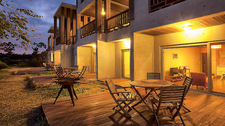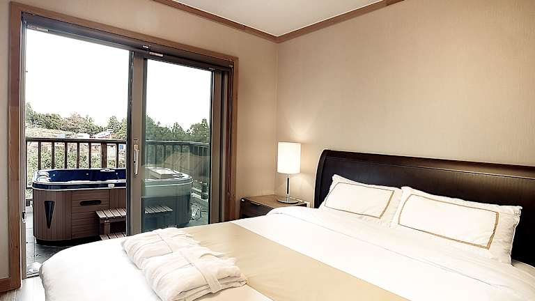 Das Jeju Eco Suites bietet geräumige, klimatisierte Zimmer mit kostenfreiem Wifi, einem Essbereich, einer Küchenzeile, einer Sitzecke, einem TV sowie einem Balkon mit Blick auf die üppige grüne Umgebung. Die Suiten verfügen zusätzlich über eine Whirlpool-Badewanne. Die Unterkunft eignet sich gut für Familien und bietet eine heimelige Atmosphäre. Das Hotel hat keinen eigenen Restaurantbetrieb, jedoch sind verschiedene Restaurants und Unterhaltungsmöglichkeiten innerhalb von 5 Fahrminuten erreichbar.