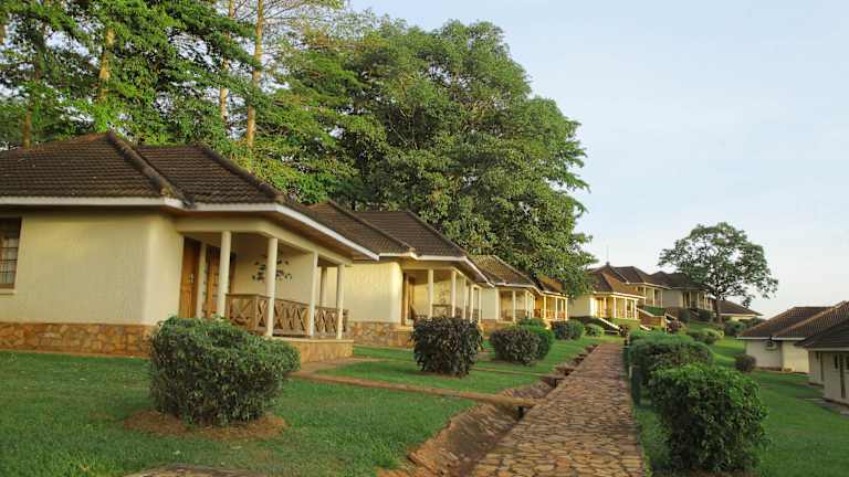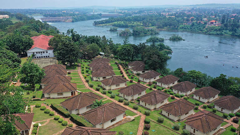 Das Jinja Nile Resort befindet sich in Jinja an den Ufern des Nils, eingebettet in über 12 Hektar tropischer Gärten. Die Umgebung bietet eine malerische Kulisse und ist ideal für entspannende Spaziergänge.