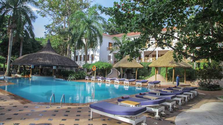 Das Jinja Nile Resort bietet eine Vielzahl an Annehmlichkeiten und Einrichtungen, darunter kostenfreies Wifi, einen Aussenpool und fünf Bars, in denen Gäste entspannen können. Zusätzlich stehen eine Sauna, ein Fitnesscenter und Konferenzräume zur Verfügung. Die herrliche Gartenanlage lädt zum Verweilen und Entspannen ein.