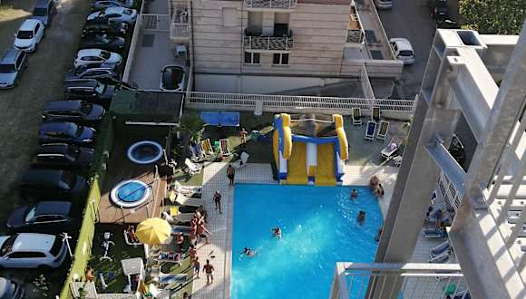 Die Unterkunft Hotel Jumbo befindet sich in Rimini an der Viale Regina Margherita 107. Sie bietet einen Blick auf den Strand und liegt in der Nähe verschiedener Strände wie Marebello, Rivazzurra und Bellariva. Der Flughafen Federico Fellini ist nur 2 km entfernt.