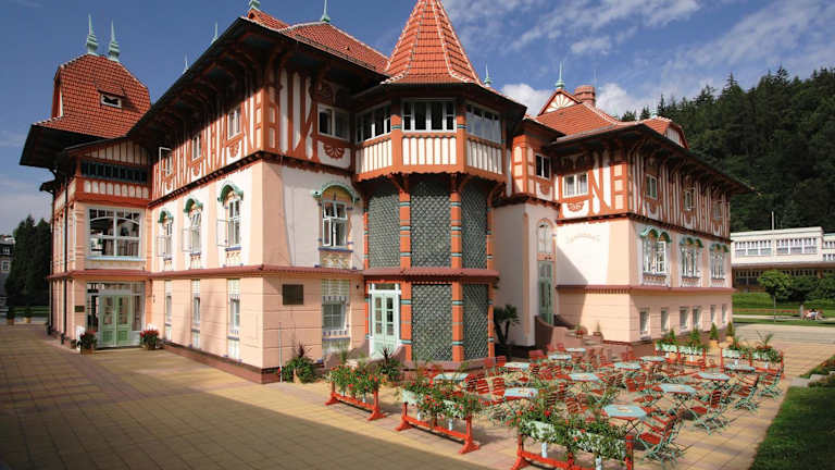 Das Hotel befindet sich in Luhacovice, einer charmanten Kurstadt, die für ihre schönen Heilquellen bekannt ist. Die Umgebung bietet zahlreiche Freizeitmöglichkeiten wie Wandern und Velofahren.