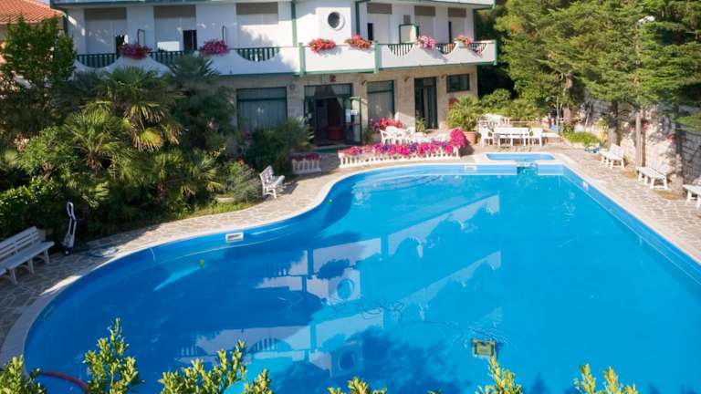 Das Hotel K2 bietet komfortable Zimmer mit kühlen Fliesenböden und LCD-TV. Teilweise verfügen die Zimmer über einen Balkon mit Blick auf die Adria oder die umliegenden Hügel. Zudem wird ein klavierförmiger Pool, ein münzbetriebener Whirlpool sowie kostenfreie Parkiermöglichkeiten angeboten.
