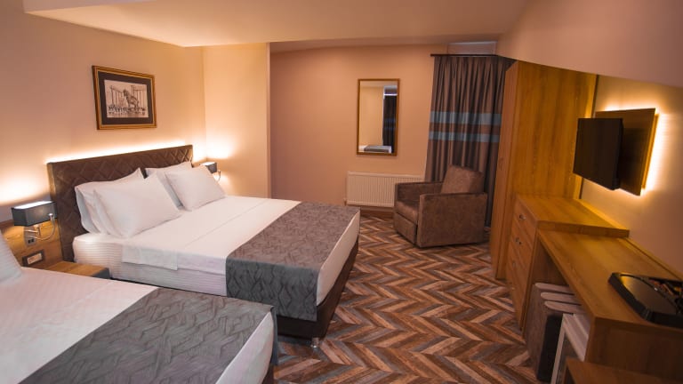 Erleben Sie einen angenehmen Aufenthalt im Hotel Kale 17 in Çanakkale. Das Hotel bietet kostenfreies WLAN, eine 24-Stunden-Rezeption und einen Geldwechsel. Die Zimmer sind komfortabel eingerichtet und verfügen über ein eigenes Bad, einen Flachbild-TV und Klimaanlage. Genießen Sie ein köstliches Frühstück, das jeden Morgen serviert wird. Das Hotel bietet auch Bügelservice und Businesseinrichtungen. Entdecken Sie die beliebten Sehenswürdigkeiten in der Nähe des Hotels, wie den Strand Mega und das Marinemuseum von Çanakkale.