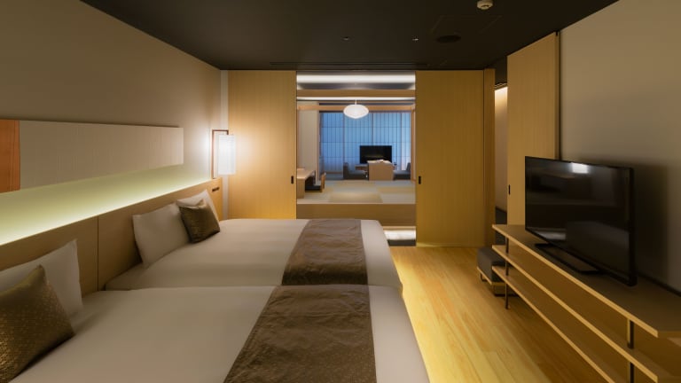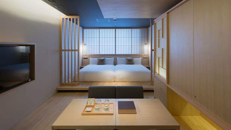 Die Zimmer im hotel kanra kyoto sind geräumig und bieten eine einzigartige Mischung aus traditionellem japanischem, modernem und westlichem Dekor. Die Zimmer verfügen über kostenfreies WLAN, japanische Tatami-Böden und einen Sitzbereich im japanischen Stil. Jedes Zimmer ist mit traditionellen Keramiken von Kyoto Kiyomizu-yaki ausgestattet und verfügt über ein eigenes Bad mit Holzbadewanne und kostenfreien Pflegeprodukten.
