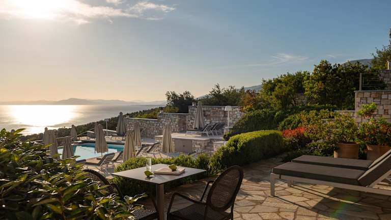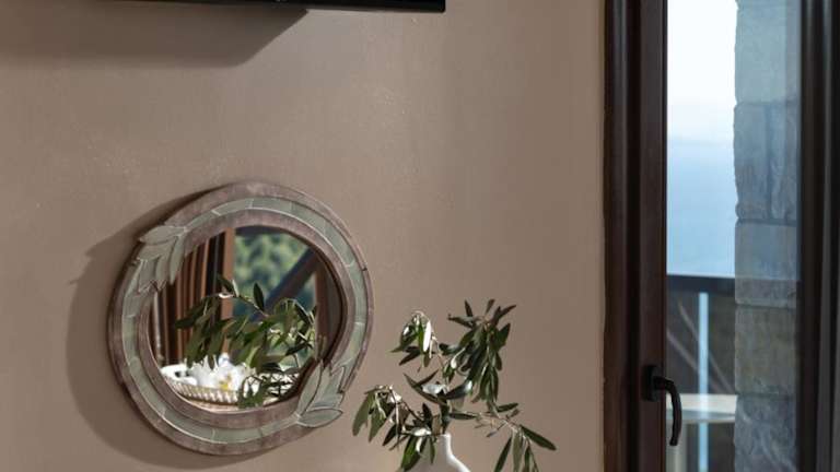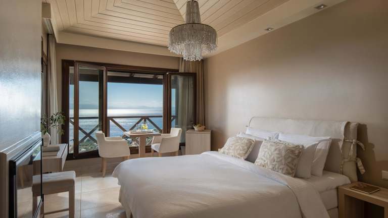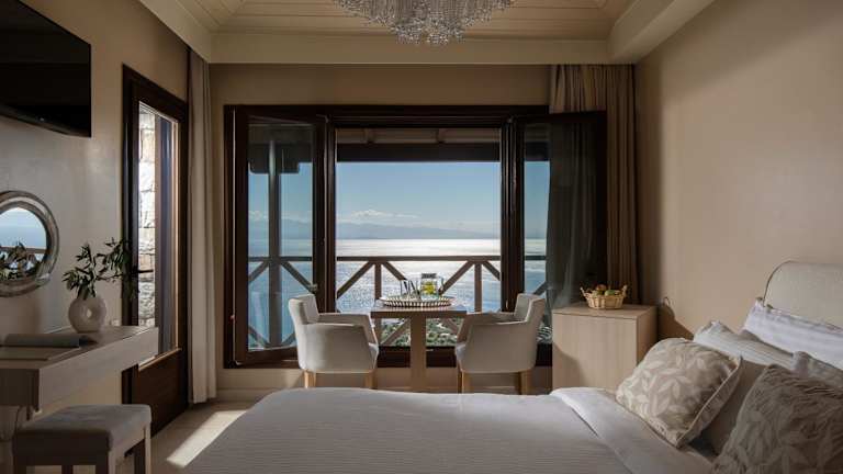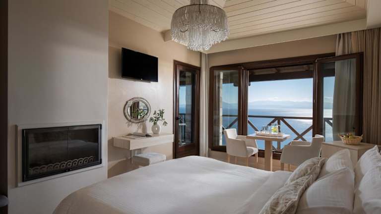 Die Zimmer im Karavia Lux Inn sind elegant eingerichtet und bieten Ihnen einen komfortablen Rückzugsort. Die Matratzen von Coco-mat sorgen für einen erholsamen Schlaf und die handgefertigten Kunstwerke verleihen den Zimmern eine besondere Note. Jedes Zimmer verfügt über einen möblierten Balkon oder eine Terrasse mit Panoramablick auf das Meer, den Pool und die Berge. Ein geothermisches Kühl- und Heizsystem sorgt für angenehme Temperaturen zu jeder Jahreszeit und ein 32-Zoll-Flachbild-TV steht Ihnen zur Verfügung. Das moderne Badezimmer ist mit einer Duschkabine ausgestattet und einige Zimmer bieten zudem einen gemütlichen Kamin.