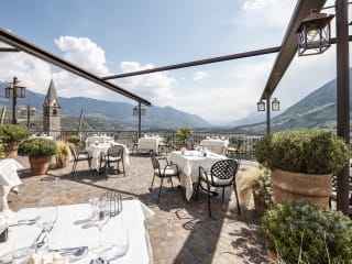 Selbstverpflegung, Frühstücksbuffet oder Halbpension. Sie haben die Qual der Wahl und basteln sich Ihren perfekten Urlaub. Unser Frühstücksbuffet mit Bauernprodukten aus Algund, Vellau und Aschbach, sowie Marmeladen und Säften aus eigenem Anbau, weckt die Wandergeister. Unser 5-Gang-Abendmenü lässt ebenfalls keine Wünsche offen und schmeckt auf der Panoramaterrasse mit Blick über das Tal und in die Bergwelt besonders gut.