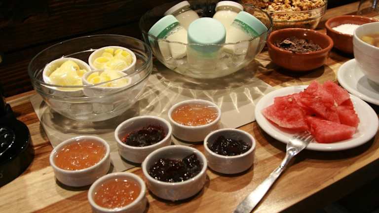 Das Hotel Kaulem bietet morgens ein Frühstück mit einer Auswahl an Brot, Obst, Joghurt, Cerealien und frischem Orangensaft. Weitere Verpflegungsmöglichkeiten umfassen eine Bar sowie eine Snackbar. Bei besonderen Ernährungsbedürfnissen sind auf Anfrage spezielle Speisen erhältlich.