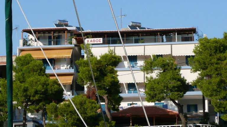 Das Hotel Kavos ist im malerischen Patitiri gelegen, nur 100 m vom Haupt Hafen und der Hauptstadt Alonissos entfernt. Der Strand Rousoum ist in 600 m erreichbar. In der Umgebung finden sich zahlreiche Fischtavernen und Restaurants.