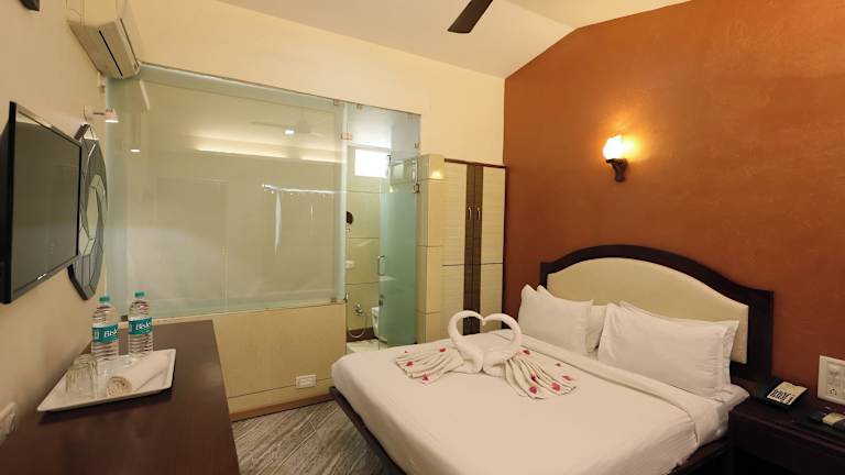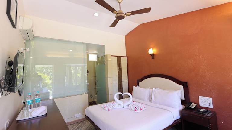 Die klimatisierten Zimmer sind mit einem LCD-TV, einem eigenen Kühlschrank sowie einem verglasten Bad mit Dusche ausgestattet. Von der Terrasse aus können die Gäste die Aussicht geniesse. Es sind Familienzimmer verfügbar und Haustiere sind erlaubt.