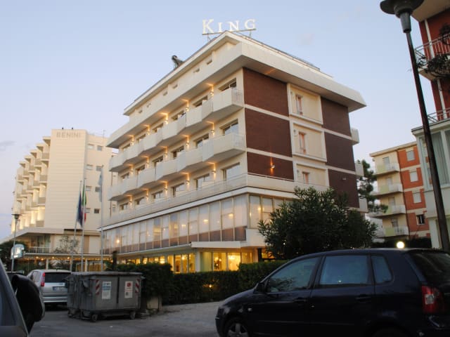 Das Hotel King liegt direkt am Strand von Milano Marittima und bietet eine familiäre Atmosphäre mit einem angenehmen Garten. Das Hotel stellt Ihnen diverse Services zur Verfügung: grosser eingefriedeter Parkplatz, Schwimmbecken für Kinder und Hydromassage-Wanne, Fahrräder, Mini Club, Wi-Fi in gemeinsamen Räumen und Internet Anschluss in Exclusive Zimmer. Als Gäste des Hotels können Sie außerdem den Wasserpark „Atlantica“ sowie den Vergnügungspark „Azzurro Club Village“ mit einem täglichen abendlichen Unterhaltungsservice kostenlos eintreten.