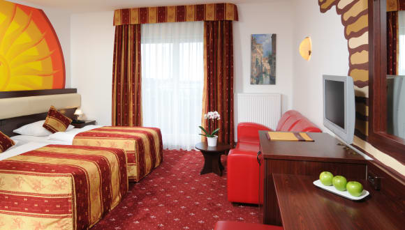 Egal on im Twin oder Double Zimmer sind unsere gemütlich eingerichteten Zimmer ausgestattet mit den Annehmlichkeiten eines 4 Sterne Hotels zum 3 Sterne Preis