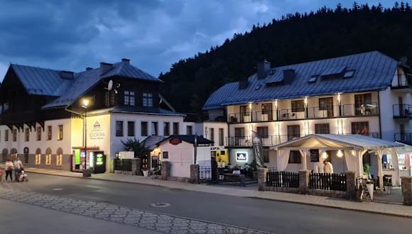 Das Hotel Kolorowa befindet sich im Zentrum von Karpacz, direkt an der Fussgängerzone, gegenüber dem Schlittenberg Kolorowa. Es liegt am Fluss Lomnica und ist 500 m vom Museum für Sport und Tourismus sowie etwa 150 m von der Attraktion 'Karkonoesze Mysteries' entfernt. Der Freizeitpark Western City ist lediglich 2,5 km von der Unterkunft entfernt.
