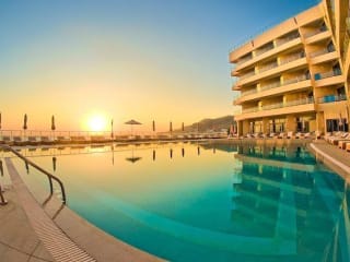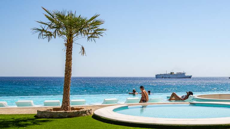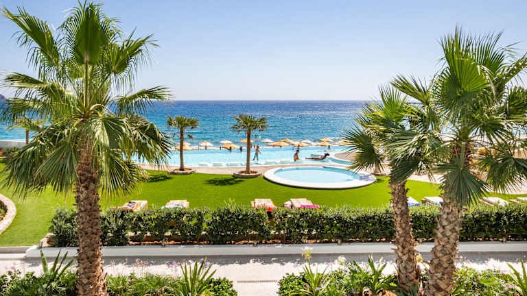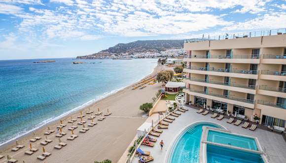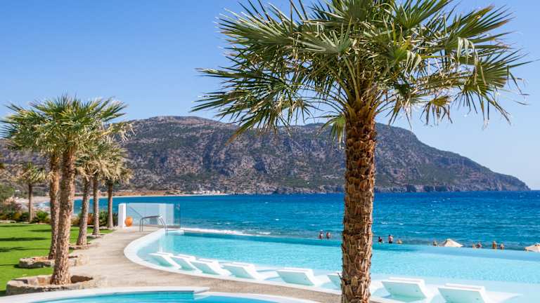 Das Hotel Konstantinos Palace befindet sich in unmittelbarer Nähe zum feinsandigen Strand Afoti in Karpathos, nur 20 Meter vom Wasser entfernt. Die ruhige Lage in der Ortschaft Amoopi erlaubt eine entspannte Atmosphäre, während die Hauptstadt Pigadia nur 1 km entfernt ist und über verschiedene Restaurants und Geschäfte verfügt. Der Flughafen Karpathos ist rund 14 km entfernt und bequem erreichbar.