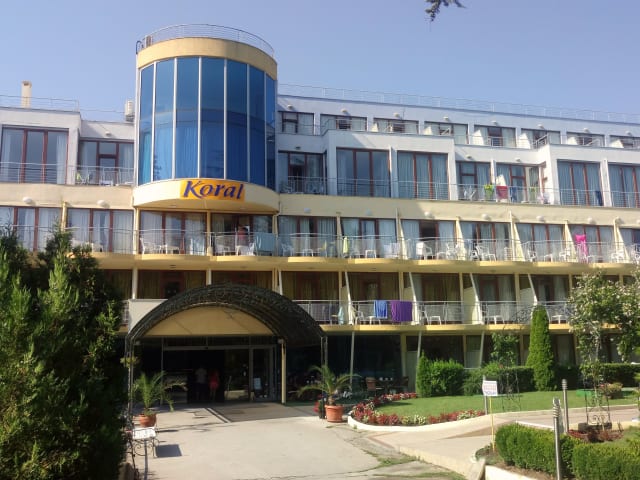 "Das Hotel Koral befindet sich in St. Konstantin und Elena, einem beliebten Ferienort an der bulgarischen Küste. Es liegt in einem natürlichen Park, nur 500 m vom Strand entfernt. In der Nähe des Hotels gibt es das Kloster ""Hll. Konstantin und Helena"" sowie ein Thermalbad. Die Einkaufspromenade ist ebenfalls nur 300 m entfernt. Der Flughafen Varna ist ca. 16 km entfernt."