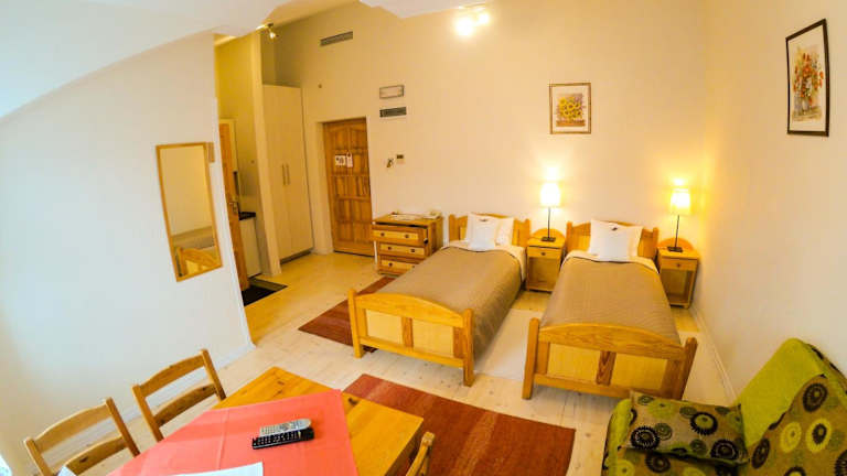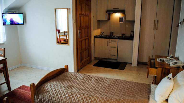 Die Zimmer im Hotel Krak sind hell und in warmen Farben gehalten. Jedes Zimmer verfügt über eine voll ausgestattete Küchenzeile, in der Sie Ihre eigenen Mahlzeiten zubereiten können. Kostenloser Internetzugang, klimatisierte Zimmer und moderne Badezimmer mit Fußbodenheizung und Haartrocknern sorgen für einen angenehmen Aufenthalt.