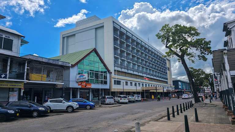 Das Hotel befindet sich direkt im Zentrum von Paramaribo. In der Nähe sind zahlreiche Geschäfte, Regierungs- und Geschäftsbüros, Restaurants und Kasinos. Die Entfernung zum Flughafen beträgt etwa 250 Meter.