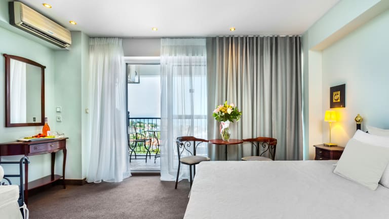 Die hoteleigene Gastronomie erfreut durch vegetarische Spezialitäten. Das Restaurant Athos Palace bietet den Hotelgästen Bewirtungsmöglichkeiten in der Nähe.