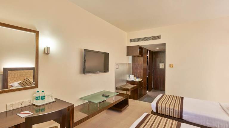 Das Hotel Krishna Palace bietet eine behagliche Atmosphäre in einem modernen Gebäude mit 68 Zimmern und einem vielfältigen Serviceangebot. Zu den besonderen Merkmalen gehören ein freundliches Personal, das 24 Stunden am Tag zur Verfügung steht, sowie die Möglichkeit zur Buchung von Ausflügen am Tourdesk. Die Einrichtung bietet zudem eine Gepäckaufbewahrung, einen Safe und einen Kamin für ein heimeliges Ambiente. Zugang zu Wifi steht im gesamten Hotel zur Verfügung und es werden verschiedene Dienstleistungen angeboten, darunter ein Zimmerservice, ein Wäscheservice und ein eigener Shuttlebus.