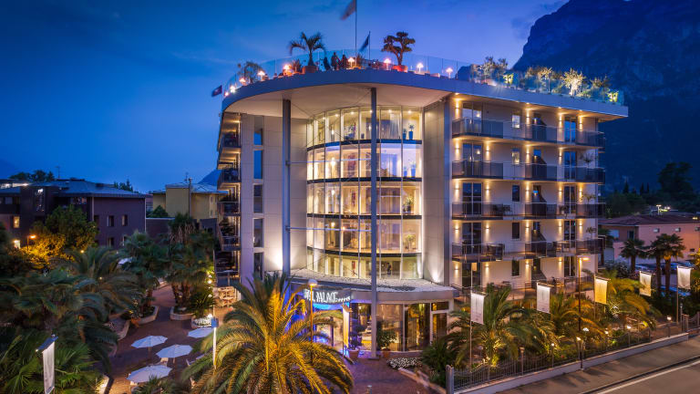 Willkommen im Hotel Kristal Palace. Nur wenige Meter von den schönen Stränden Sabbioni und Purfina und 800 m von der Altstadt von Riva del Garda entfernt. Das Hotel Kristal Palace, unser 4-Sterne-Superior-Angebot am Gardasee, kann Ihren Urlaub dank des panoramischen Sky Pools, der feinen und eleganten Zimmer und der raffinierten Gourmetgerichte des "Live"-Restaurants in eine unvergessliche Erinnerung verwandeln. Giuseppe Tonelli und das gesamte Team des Hotel Kristal Palace heißen Sie in einem eleganten und exklusiven Ambiente empfangen. Das ideale um einen Urlaub voller Romantik, Entspannung und raffinierter Küche zu verbringen. Perfekter Ort für den Urlaub eines Paares oder mit Freunden. Treffpunkt für Aperitifs oder Events auch für externe Gäste. Mit dieser Erwachsenen freundlichen Struktur möchten die Tonelli Hotels den besonderen Bedürfnissen von Gästen über 14 Jahren gerecht werden, indem sie die Möglichkeit bieten, eine echte Pause vom Alltagsstress zu erleben und positive Energie zu tanken. Auf der großen Sky Pool Terrasse mit Panoramablick können Sie in den Sommer Monaten im Freien frühstücken, zu Mittag essen und jeden Abend Live-Musikabende und viele Veranstaltungen genießen, während Sie Cocktails bei einer angenehmen Brise genießen. Von 17:30 bis 18:30 Happy Hour! Jeden Tag wird eine Auswahl unseres Barkeepers im Sonderangebot angeboten, begleitet von Häppchen. Der Außenpool mit Whirlpool befindet sich auf dem Dach und ist mit Sonnenliegen, Sonnenschirmen, Strandtüchern und Snackbar ausgestattet. Ideal um die Sonne zu genießen oder einfach mit einem Buch zu entspannen. Panoramaposition auf der Terrasse mit Fernglas Sky Eye "Vellardi" zur 360 Grad Bewunderung der Schönheiten und der umgebenden Natur. Privatparkplatz im Hotel inbegriffen.