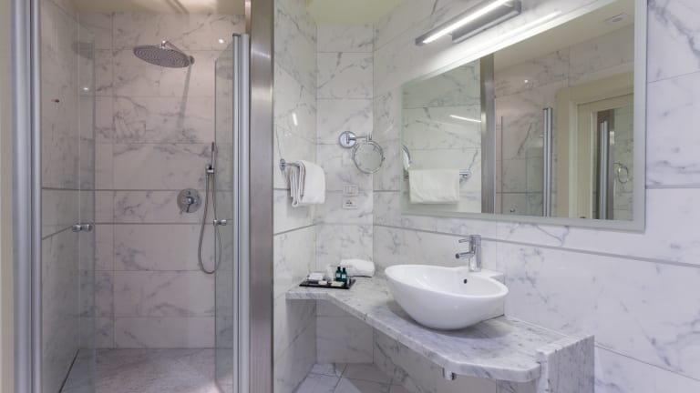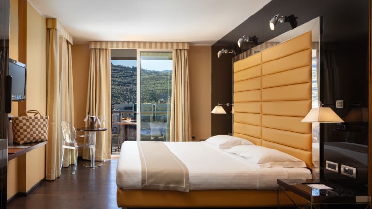 Verschiedene Zimmerkategorien, alle mit Balkon, kostenlosem W-LAN, Klimaanlage, Safe, Mini Bar und Sat-TV. Elfenbein, himmelblaue und cremeweiße Nuancen, Parkettböden aus gebleichter Eiche, eine feine Lederausstattung und große Marmorbadezimmer, bereichern die eleganten und komfortabelen Zimmer. Privater Außenparkplatz, Abstellraum für Fahrräder und Sportausrüstung.