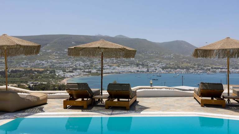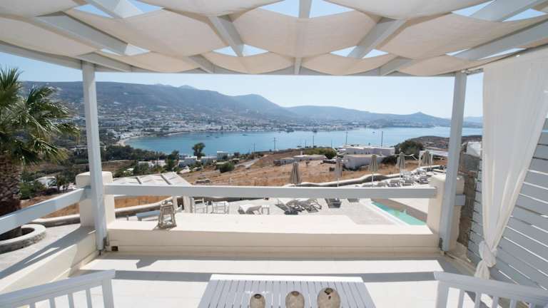 Das Hotel Krotiri Bay befindet sich in einer malerischen Lage mit herrlichem Blick auf den Golf von Parikia, in unmittelbarer Nähe zum Hafen von Paros.