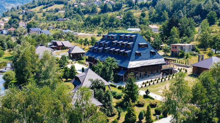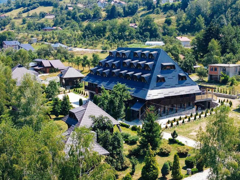 Das Hotel Kula Damjanova in der ruhigen Ortschaft Komnenovo Ethno ist der perfekte Ort, um einen entspannten und authentischen Urlaub am Ufer des Sees Plav zu verbringen. Genießen Sie den privaten Zugang zum See, den Strand und das erstklassige Restaurant, das traditionelle montenegrinische Küche serviert. Die Zimmer sind liebevoll gestaltet und im regionalen Stil eingerichtet, während die öffentlichen Bereiche des Hotels eine gemütliche und authentische Atmosphäre bieten. Erkunden Sie die Umgebung auf Wander- und Fahrradwegen oder probieren Sie Ihr Anglerglück am See. Das Zentrum von Plav ist nur einen kurzen Spaziergang entfernt.