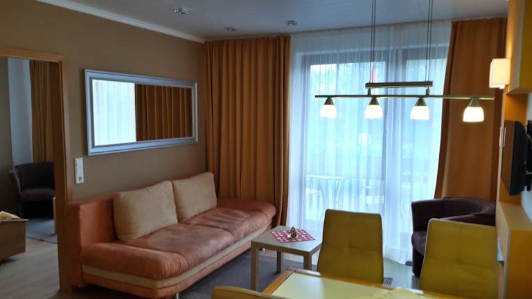 Die Zimmer in der Kurpark-Residenz sind mit einem Sitzbereich, einem Flachbild-TV, einer gut ausgestatteten Küchenzeile mit Kühlschrank, Minibar, Herdplatte, Kaffeemaschine und Wasserkocher sowie einem Essbereich ausgestattet. Einige der Wohneinheiten verfügen zudem über eine Terrasse oder eine Veranda.