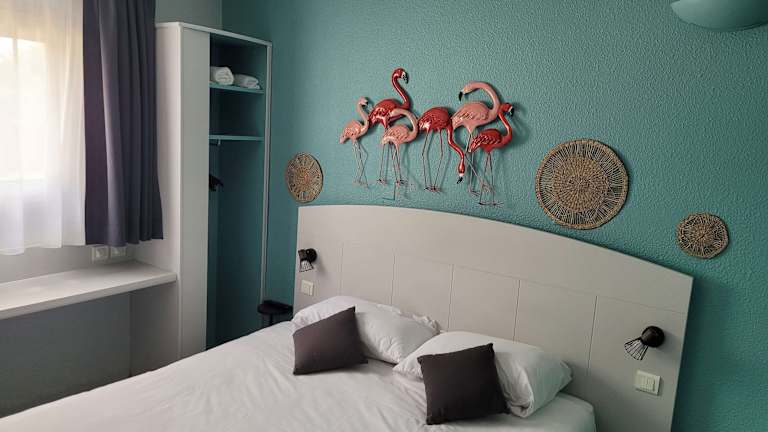 Die Zimmer verfügen über Klimaanlage, Heizung, ein Doppelbett, Schreibtisch, Kühlschrank, Mikrowelle, Tee-/Kaffeemaschine und ein Bügelset. Zudem stehen ein Telefon mit Direktwahl, Sat-TV und Wifi (ohne Gebühr) zur Verfügung. Im Badezimmer befinden sich Dusche und Badewanne sowie ein Haartrockner. Es sind auch rollstuhlgerechte Zimmer mit barrierefreiem Badezimmer verfügbar. Familien- und Nichtraucherzimmer sind ebenfalls buchbar.