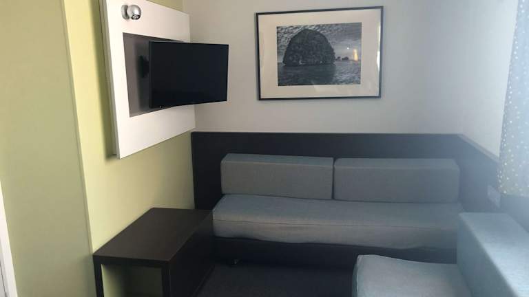 Die Zimmer verfügen über Klimaanlage, individuell steuerbare Heizung, ein Doppelbett, Schreibtisch sowie eine Tee-/Kaffeemaschine. Ein Bügelset, ein Direktwahltelefon, ein TV-Gerät mit Satelliten- und Kabelfernsehen sowie gratis Wifi sind ebenfalls vorhanden. Die Badezimmer sind mit Dusche und Badewanne ausgestattet, und es stehen Kosmetikartikel bereit. Ebenfalls sind auch rollstuhlgerechte Zimmer verfügbar.