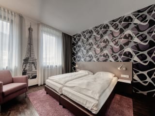 Das Design-Hotel bietet 17 Zimmer. Angefangen vom Einzelzimmer über Doppelzimmer, Doppelzimmer Komfort bis hin zur Suite und zum Loft. Die Zimmer sind nach Themen gestaltet wie Kairo, New York, Paris, Rom oder Shanghai. www.hotel-saarland.de