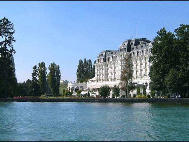 Das Hotel L'Impérial Palace liegt im Herzen von Annecy, direkt am Ufer des malerischen Lac d'Annecy. Die Entfernung zum Stadtzentrum beträgt ca. 1,5 km. Der Golfplatz ist etwa 8 km entfernt, während die nächsten Skipisten in einer Distanz von ca. 25 km liegen. Die Umgebung bietet eine herrliche Aussicht auf die umliegenden Berge und zahlreiche Freizeitmöglichkeiten.