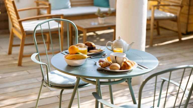 Das Frühstück wird täglich im Speisesaal oder, bei schönem Wetter, auf der Terrasse serviert. Zudem gibt es ein Café vor Ort, in dem verschiedene Getränke und kleine Speisen angeboten werden.