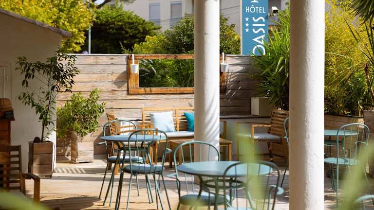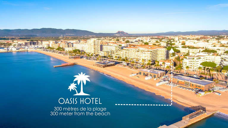 Das Hotel L'Oasis befindet sich zwischen Fréjus und Saint-Raphaël, nur 5 Gehminuten vom Strand und dem Hafen von Fréjus entfernt. Die Bucht von Agay ist in nur 10 Minuten erreichbar, während Saint-Tropez in etwa 30 Minuten zu erreichen ist.