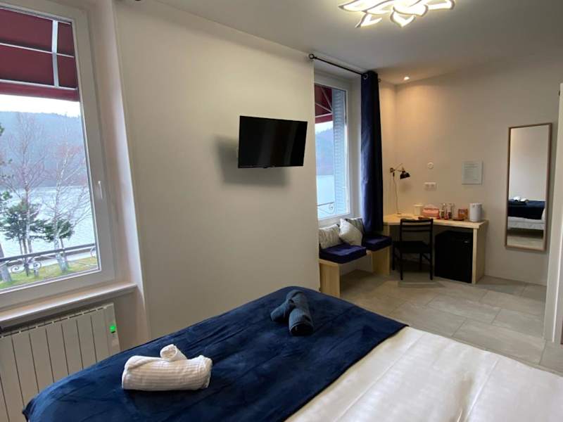 Die Zimmer im Hôtel La bonne hôtesse bieten einen atemberaubenden Blick auf den See oder den Garten und sind mit einem LCD-TV sowie einer Minibar ausgestattet. Einige Zimmer verfügen zudem über einen eigenen Balkon. Alle Zimmer sind schallisoliert. WLAN steht in allen Bereichen kostenfrei zur Verfügung.