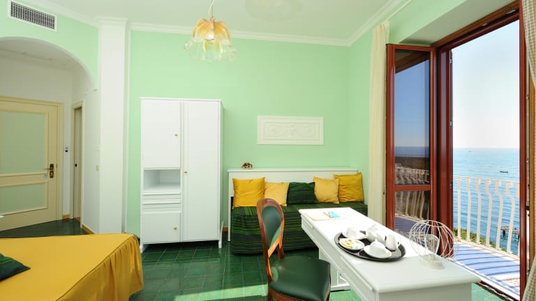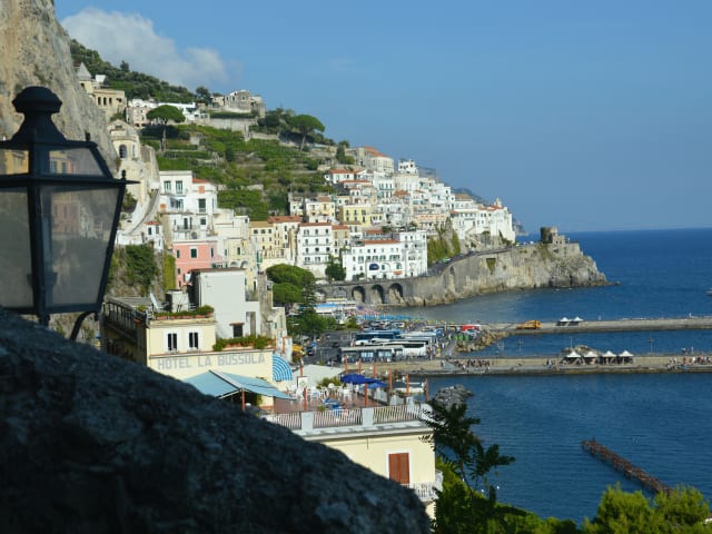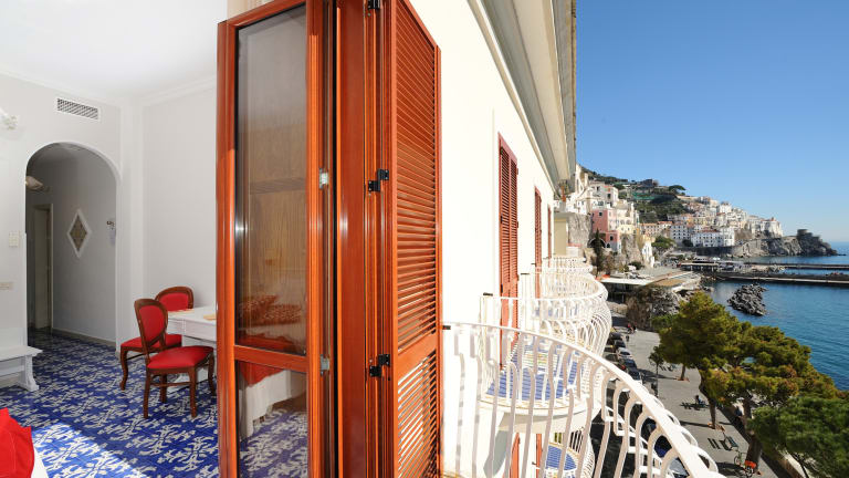 Es liegt im Zentrum, an der Lungomare-Promenade, nur 200 m vom Domplatz und der Anlegestelle entfernt, wo die Schiffe nach Positano, Salerno und Capri ablegen. Ausgestattet mit Klimaanlage, Restaurant, privatem Frühstücksraum, Bar, Lounge mit Klavier, Dachterrasse mit Lounge-Bar, Garage und Parkplatz, Elektroautoaufladung.