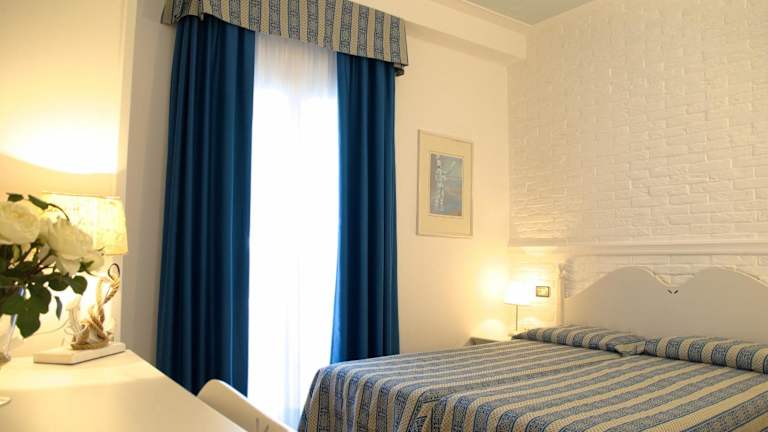 Die Zimmer im Hotel La Goletta sind mit der üblichen Ausstattung versehen. Gäste profitieren zudem von einem Platz am Privatstrand.
