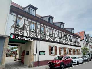 Das Hotel La Grotta ist ein italienisches Hotel in einem charmanten Fachwerkhaus mit einer Fassade aus dem 17. Jahrhundert. Es bietet ein Restaurant mit hausgemachten italienischen Spezialitäten und eine einladende Sommerterrasse.