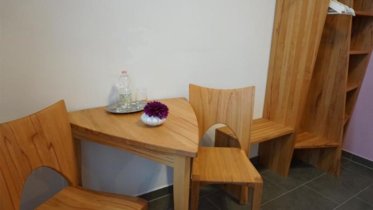 Die Zimmer im Hotel La Grotta sind traditionell mit klassischen Massivholzmöbeln eingerichtet und verfügen jeweils über einen Schreibtisch, einen Schrank und ein modernes eigenes Bad. Im Boardinghouse sind die Zimmer ebenfalls klassisch möbiliert, mit einem Schreibtisch, Kleiderschrank und Gemeinschaftsbad direkt gegenüber dem Zimmer.