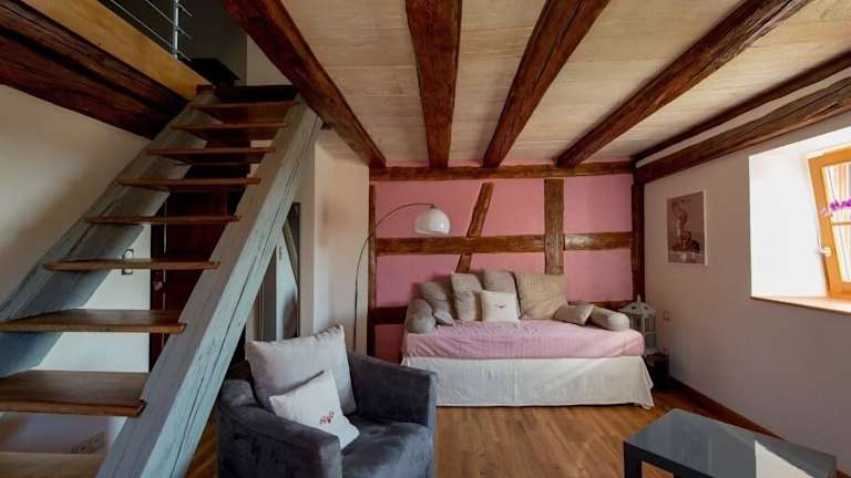 Die Pension La Maison d'Emilie liegt im Nationalpark Ballons des Vosges und ist von einer atemberaubenden Naturkulisse umgeben. Sie befindet sich an der Elsässer Weinstraße und ist nur 15 km von der charmanten Stadt Colmar entfernt. Die Lage bietet Ihnen die Möglichkeit, die Schönheit der Region zu erkunden und die einzigartige Atmosphäre des Elsass zu erleben. Die Autobahn A36 ist nur 9 km entfernt und ermöglicht eine bequeme Anreise mit dem Auto.