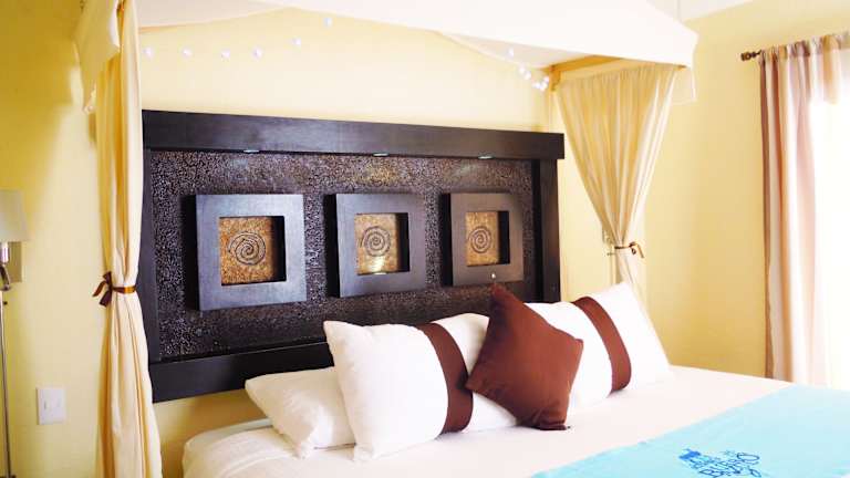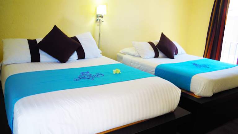 Die Zimmer im Hotel sind mit Teppichböden ausgestattet und verfügen über ein Doppelbett oder Kingsize-Bett. Ein Ventilator sorgt für angenehmes Raumklima. Die Ausstattung umfasst eine Kochnische mit Kühlschrank, Herd, Mikrowelle und Tee-/Kaffeemaschine. Zudem sind ein Safe, Schreibtisch, TV-Gerät mit Kabelanschluss, WLAN (ohne Gebühr), und ein Badezimmer mit Dusche und Badewanne vorhanden.
