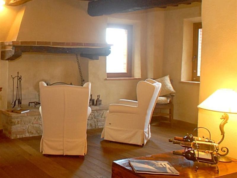 Der Wohnsitz erstreckt sich über drei Stockwerke: - Vom antiken Eingangstor gelangt man zum zweiten Stockwerk, wo sich der alte Kamin befindet aus grauem Stein und Sandstein und die Relax- und Leseecke mit Satellitenfernsehen. - Im dritten Stock befindet sich das Schlafzimmer, das harmonisch mit handgearbeiteten Arte Povera Möbeln ausgestattet ist, und das große Kingsize-Doppelbett, das aus Nussbaumholz handgearbeitet ist. - Die Böden des zweiten und dritten Stockes sind aus Eichenparkett mit abgekanteten, gebürsteten und geölten Brettern. - Das Badezimmer ist mit Kastanienholzmöbeln und Travertin aus Rapolano ausgestattet, mit einer komfortabelen Dusche und mit einer prächtigen Stilarmatur. Auch die Decke des Badezimmers wurde im ursprünglichen Stil mit den Sichtbalken aus Kastanie und Eiche belassen sowie mit den Ursprünglichen Cottoziegelsteinen der Wohnung.