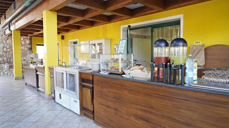 Das Frühstück wird als abwechslungsreiches Buffet serviert, das auf der Veranda im Freien eingenommen werden kann. Weitere gastronomische Angebote sind nicht beschrieben, allerdings steht eine Snackbar zur Verfügung.