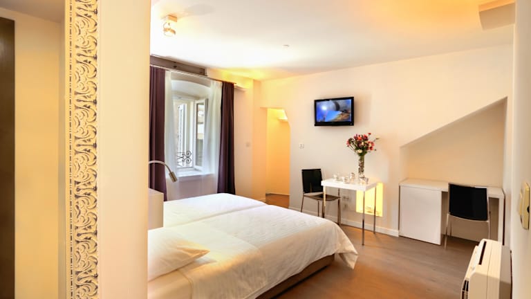 Das Hotel La Porta bietet moderne, luxuriös ausgestattete Zimmer, die alle über Annehmlichkeiten wie Klimaanlage, Sat-TV und eine Minibar verfügen. Die Einrichtung ist stilvoll und ansprechend, und die Atmosphäre ist heimelig.