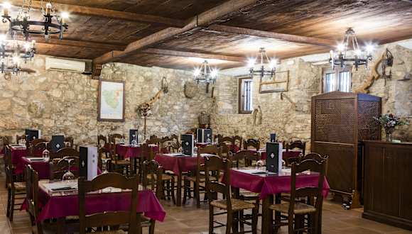 Im Hotelrestaurant können Sie regionale Gerichte probieren, darunter den berühmten Ziegenkäse, der in der Gegend hergestellt wird. Der Speisesaal ist geschmackvoll mit Steinwänden und Fliesenböden gestaltet und schafft eine gemütliche Atmosphäre. Morgens wird ein kontinentales Frühstück serviert, um den Tag gut zu beginnen.
