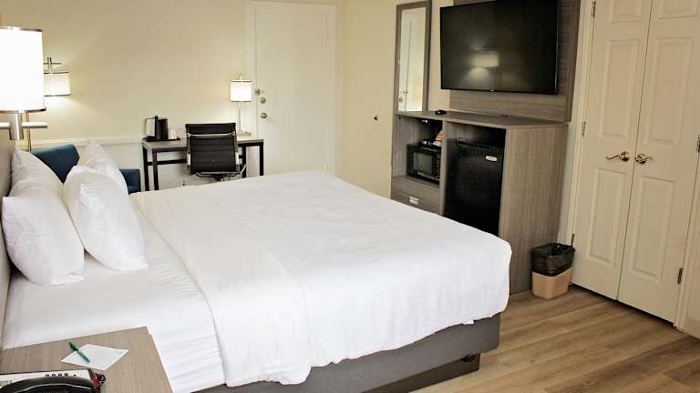 Die Zimmer sind komfortabel eingerichtet und verfügen über ein Doppelbett, einen Kühlschrank, eine Mikrowelle, eine Tee- und Kaffeemaschine sowie einen Fernseher. Ein Haartrockner ist im Badezimmer vorhanden. WLAN ist in allen Zimmern ohne Gebühr verfügbar. Es sind auch rollstuhlgerechte Zimmer mit barrierefreien Badezimmern buchbar. Familien- und Nichtraucherzimmer stehen zur Verfügung.