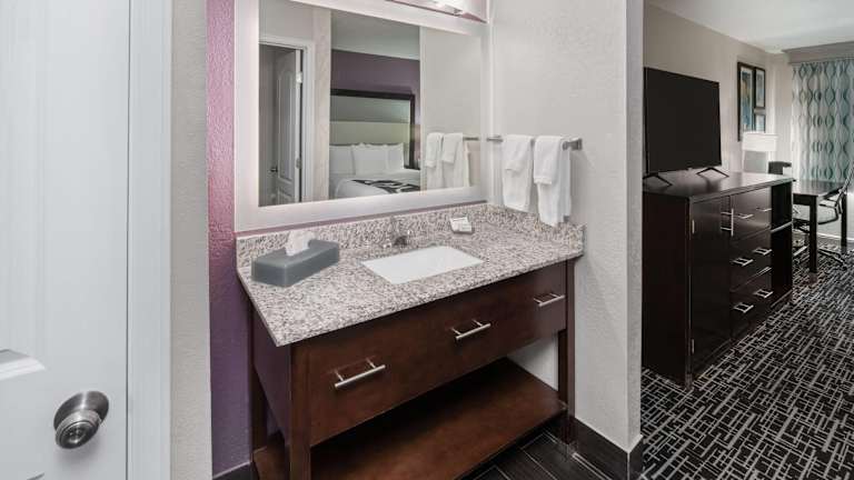 Die Zimmer verfügen über Klimaanlage, Heizung, ein Kingsizebett sowie ein Sofabett und bieten Platz für zusätzliche Zustellbetten. Zur Ausstattung gehören eine Kochnische mit Kühlschrank, Mikrowelle und Tee-/Kaffeemaschine sowie ein Schreibtisch, TV mit Satelliten-/Kabelempfang und kostenloses Wifi. Die Badezimmer sind mit einer Dusche und Kosmetikartikeln ausgestattet. Barrierefreie Badezimmer stehen ebenfalls zur Verfügung.