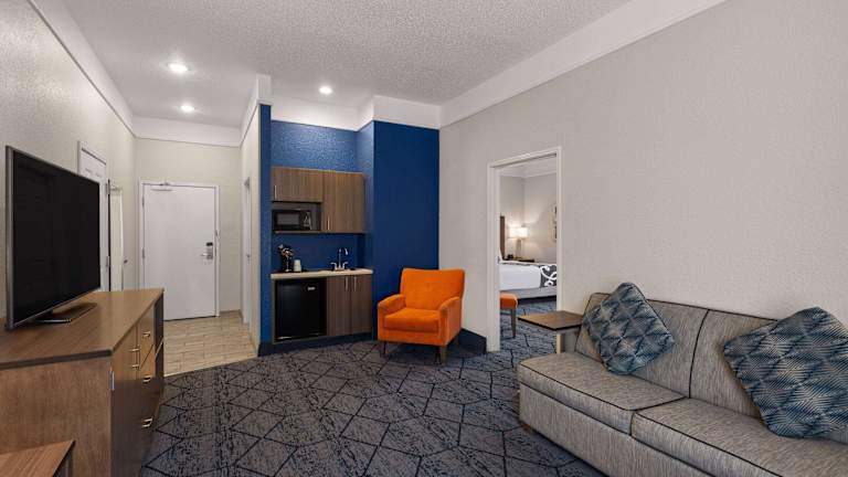 Die Zimmer sind klimatisiert und verfügen über ein Sofabett. Zur Ausstattung gehören ein Schreibtisch, Kühlschrank, Mikrowelle und Tee-/Kaffeemaschine. Ein Flachbildfernseher mit Kabelempfang und Pay-per-View-Option sowie kostenloses Wifi sorgen für Bequemlichkeit. Die Badezimmer sind mit einer Dusche und Haartrockner ausgestattet, Kosmetikartikel sind ebenfalls vorhanden. Es gibt rollstuhlgerechte Zimmer mit barrierefreiem Badezimmer.