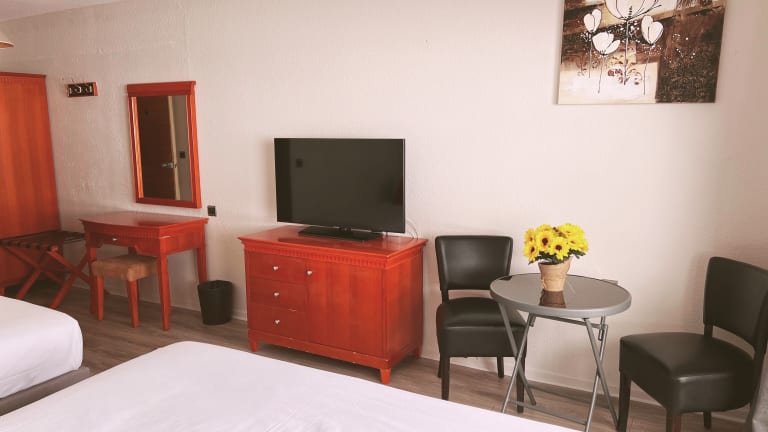 Die Zimmer sind mit Heizungen ausgestattet und bieten ein Doppelbett. Zustellbetten können auf Anfrage bereitgestellt werden. Zur Ausstattung gehören ein Schreibtisch, ein Bügelset, ein Telefon, ein TV-Gerät sowie kostenloses WiFi. Die Badezimmer verfügen über eine Dusche und einen Haartrockner, ergänzt durch eine Auswahl an Handtüchern. Das Hotel bietet sowohl Familien- als auch Nichtraucherzimmer.