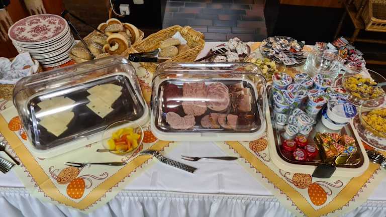 Im Hotel Ladage werden vielfältige Frühstücksoptionen in Buffetform sowie kontinentale Varianten angeboten. Es werden zudem spezielle Speisen für Ernährungsbedürfnisse auf Anfrage berücksichtigt. Guetzli sind ebenfalls verfügbar und sorgen für eine süsse Abwechslung in der Ferienzeit.