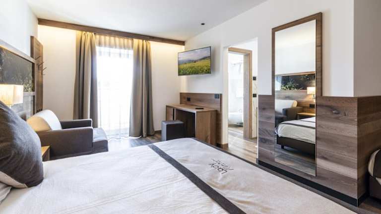 Die Zimmer des Hotels sind im Stil der Region Trentino eingerichtet und verfügen über Holzböden sowie ein Queensize-Bett. Jedes Zimmer ist mit einem Flachbild-TV, einem eigenen Bad mit Haartrockner und Pflegeprodukten sowie Wifi ausgestattet. Einige Zimmer bieten einen Balkon und es können auf Anfrage Zustellbetten bereitgestellt werden.